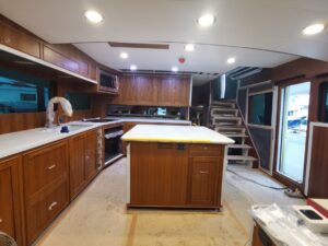 This week they’ve got the lights installed and have started turning them all on throughout the boat! All of the interior lights will have two color options – white or red. The red will be for when we’re making night passages and want to preserve our night vision for when we’re on watch. We’ll also be able to dim each of the lights giving us maximum flexibility.