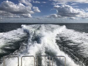 On this day, I had the camera rolling out back as they brought Steppin’ Out from idle to wide open throttle (WOT) in 45 seconds. Turn up your sound and listen to the beauty of 8 turbo’s spool up to produce 2400 hp and send her cruising through Tampa Bay at just under 26 knots (29.9 mph)! That was impressive for a boat weighing right at 140,000 lbs!